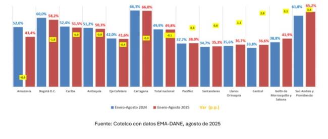 De acuerdo con la Encuesta Mensual de Alojamiento (EMA) del Dane los ingresos reales de los alojamientos turísticos entre enero y agosto de 2025 cayeron un 6,1%.