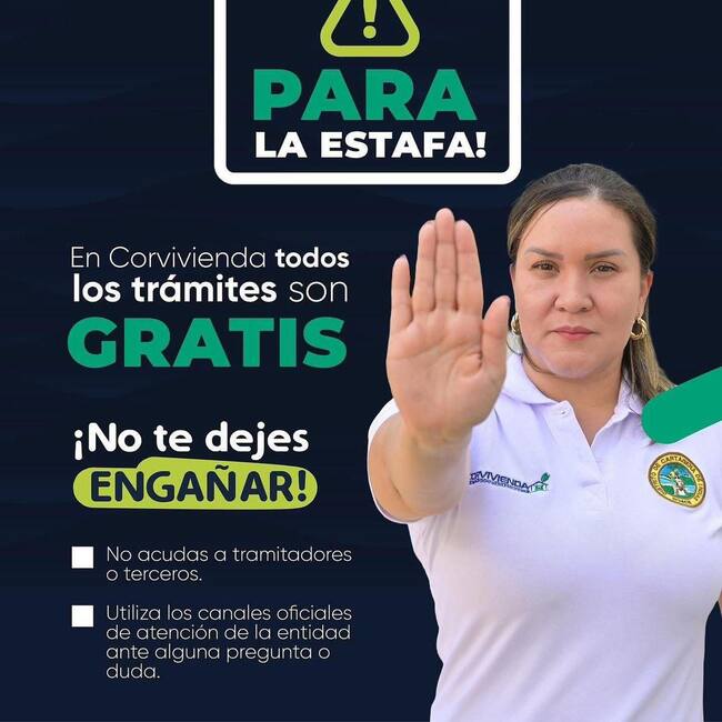 Igualmente, se le insiste a los ciudadanos que Corvivienda NO otorga subsidios, ni realiza procedimientos a través de fundaciones, tramitadores o plataformas digitales diferentes a las que socializa en su página web corvivienda.gov.co, y redes sociales oficiales.