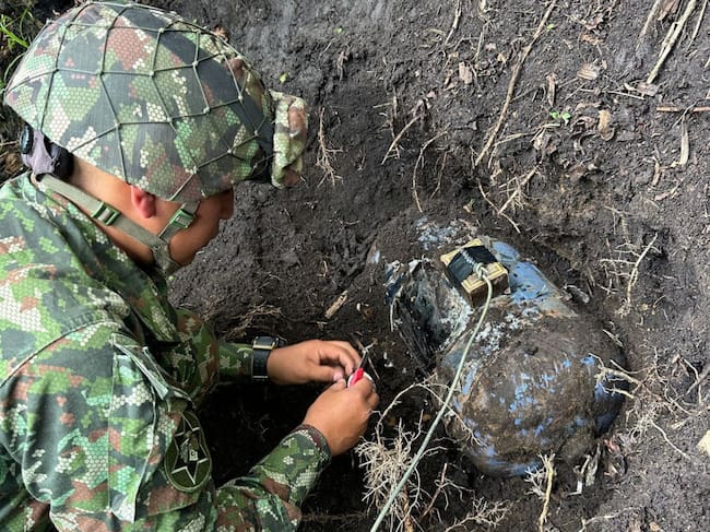 Luego de su hallazgo, se estableció comunicación con el grupo de explosivos y desminado del Batallón San Mateo, quienes llegaron al sitio y de manera controlada realizaron la explosión de este material.