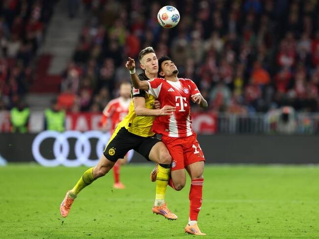 Luis Díaz jugador de Bayern Múnich disputando un balón con Nico Schlotterbeck de Borussia Dortmund /Getty Images / Alexander Hassenstein