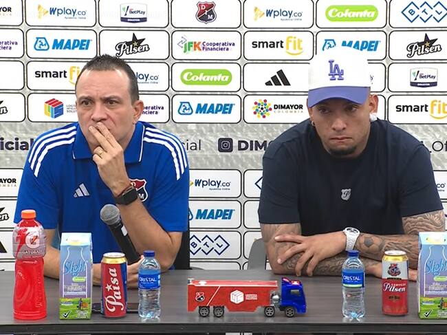 Alejandro Restrepo y Jarlan Barrera en rueda de prensa luego del empate con Santa Fe / Dimayor