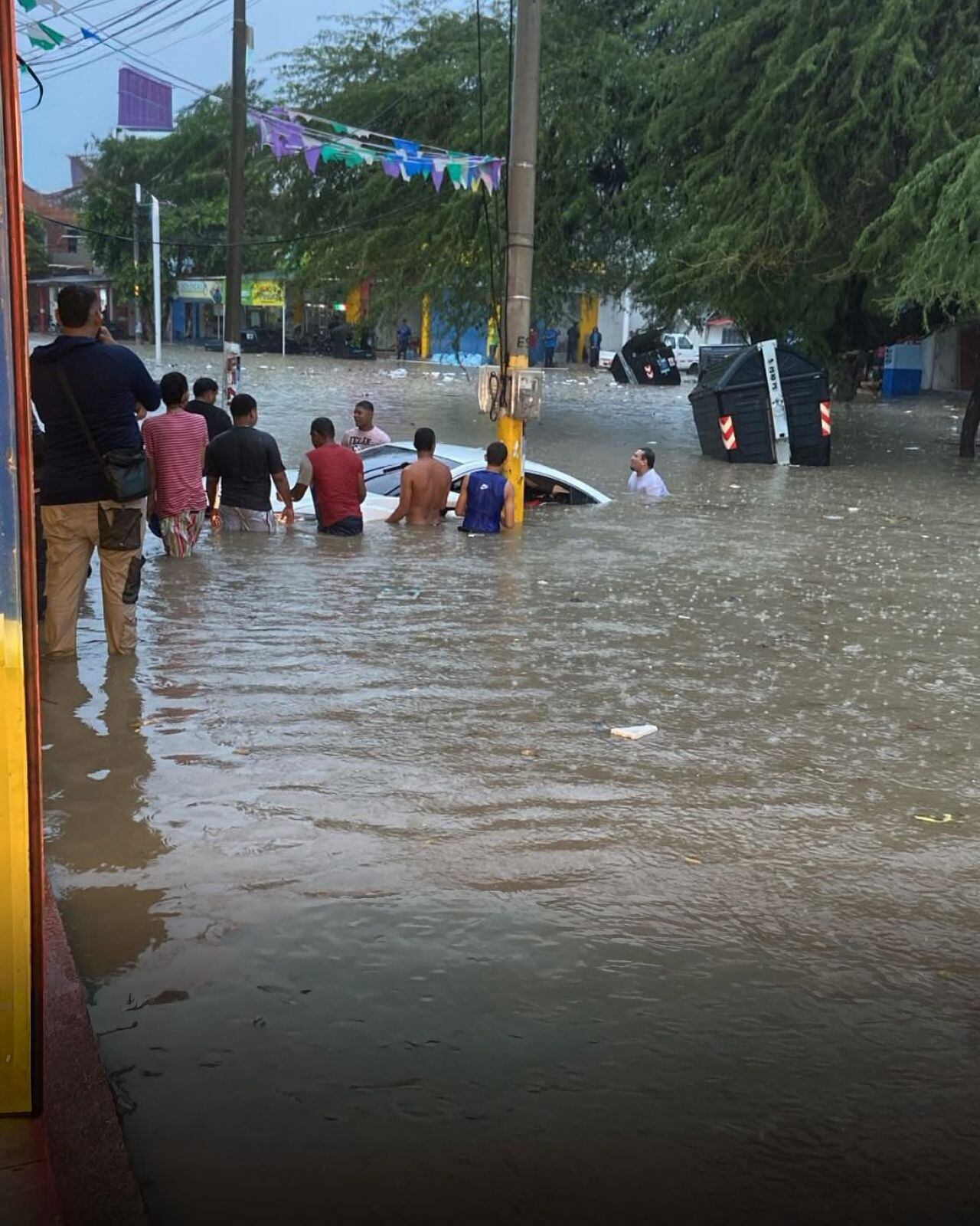 Un fuerte aguacero que ya completa más de tres horas tiene colapsadas varias calles del Centro Histórico de Santa Marta. Las intensas precipitaciones, originadas por el paso de una Onda Tropical, han provocado anegaciones en distintos sectores, dificultando la movilidad de las personas.