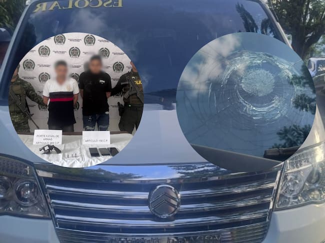 “Se logra ubicar un vehículo con dos personas; en su interior portaban un arma de juego. Minutos antes, habían realizado varios disparos a un vehículo que salía de este municipio; gracias a la pronta reacción de la Policía Nacional y nuestro Ejército Nacional, se logra ubicar este vehículo. Al realizar la respectiva requisa, se logra identificar estos dos sujetos. Estamos en verificación de una tercera persona que se encontraba en este vehículo, quien argumenta que estaba siendo transportado en contra de su voluntad”, agregó el coronel Oscar Rico Guzmán, comandante de la policía Antioquia.