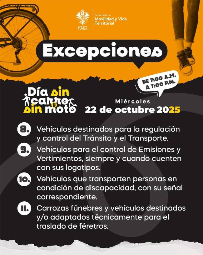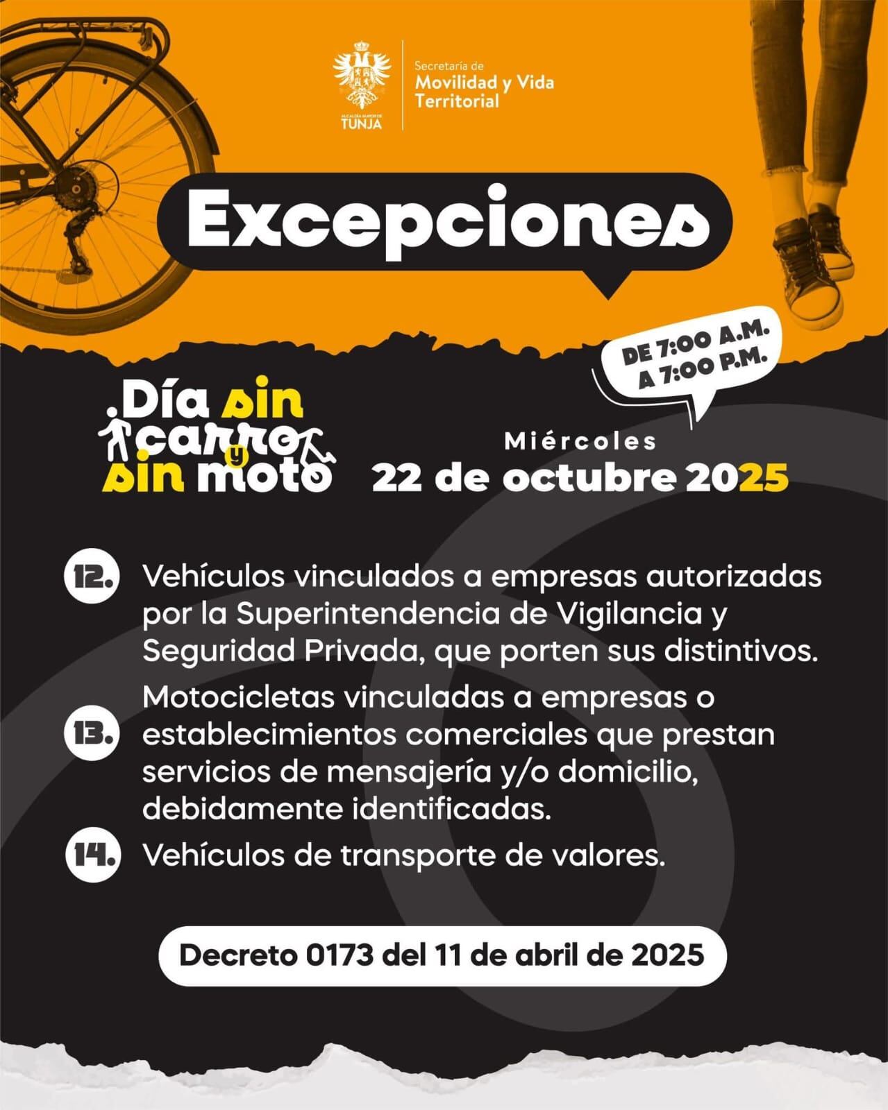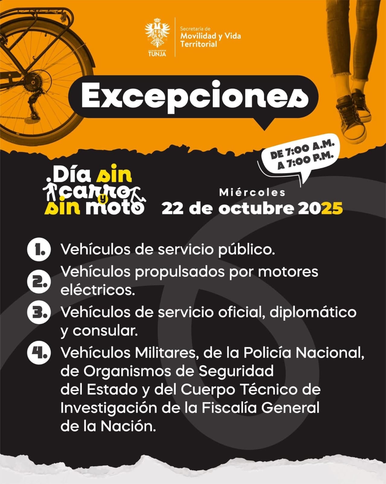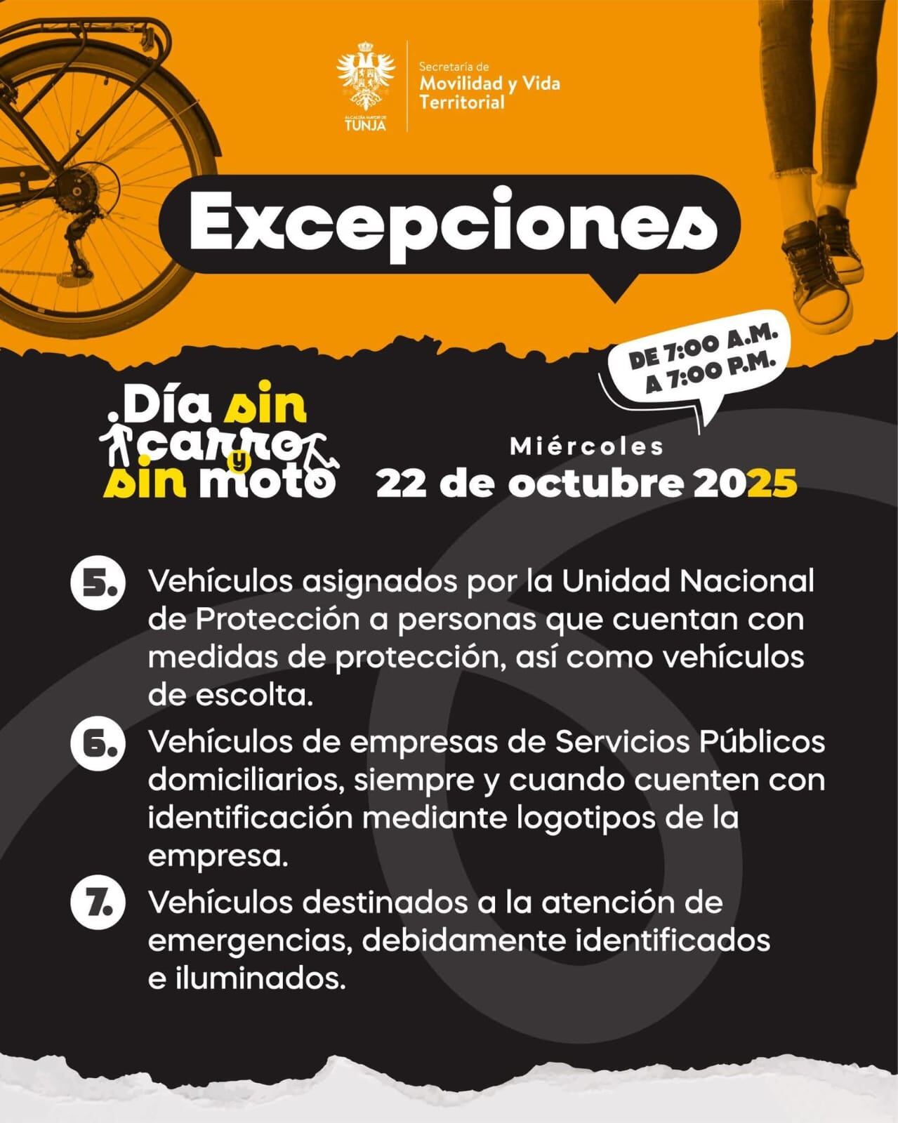 Excepciones del Día sin carro y sin moto en Tunja, Boyacá.