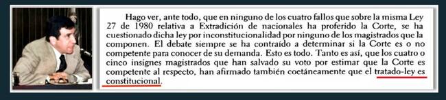 Sin embargo, no se le olvide que, dentro de las principales propuestas o demandas, y están ahí en el documento, las pueden ver, se le hace la trazabilidad completa a la relación entre narcotráfico y guerrilla. Se pueden dar cuenta de que una de las principales demandas es la extradición. En el momento en que Manuel Gaona Cruz estaba al uso de la palabra, en la Sala Constitucional, declarando una vez más que el tratado de extradición con los Estados Unidos, la ley aprobatoria, era totalmente constitucional. Entonces, se configuraron todos los elementos, más el nexo causal. Para no extenderme, simplemente invitaría a las personas que tienen curiosidad para saber cómo se configuró el crimen de lesa humanidad en este caso, acudir a la página web, porque ahí están los antecedentes y un análisis obviamente más, más complejo, que es un poquito más técnico.