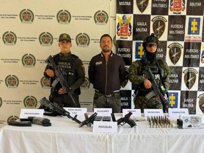 “Este sujeto fue dejado a disposición de la autoridad competente por los delitos de concierto para delinquir, porte ilegal de armas de fuego, municiones y extorsión”, agregó el coronel Patiño.