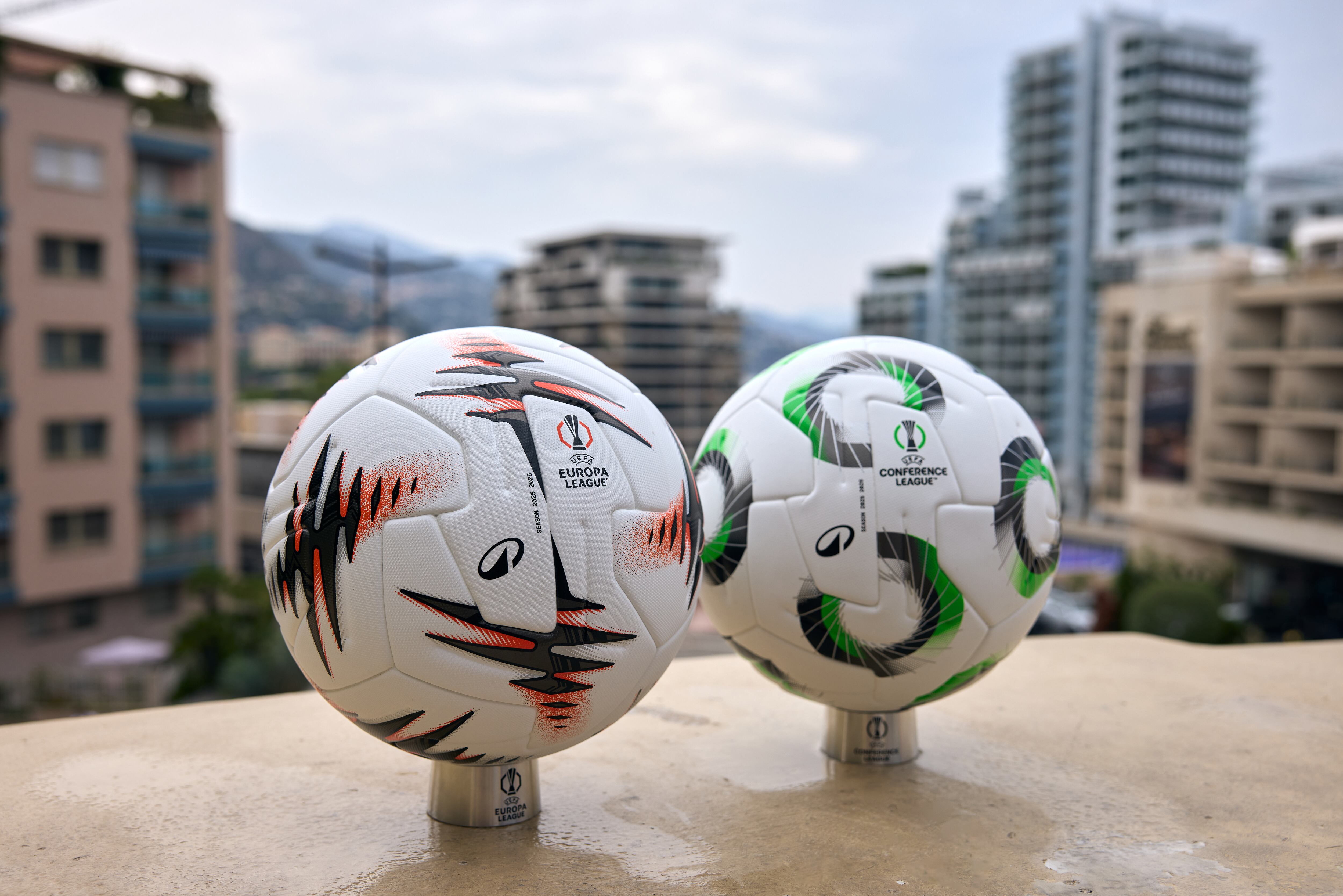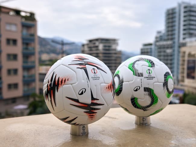 Balones de la Europa League y la Conference League para la temporada 2025-26. (Photo by Francesco Scaccianoce - UEFA/UEFA via Getty Images) / Francesco Scaccianoce - UEFA