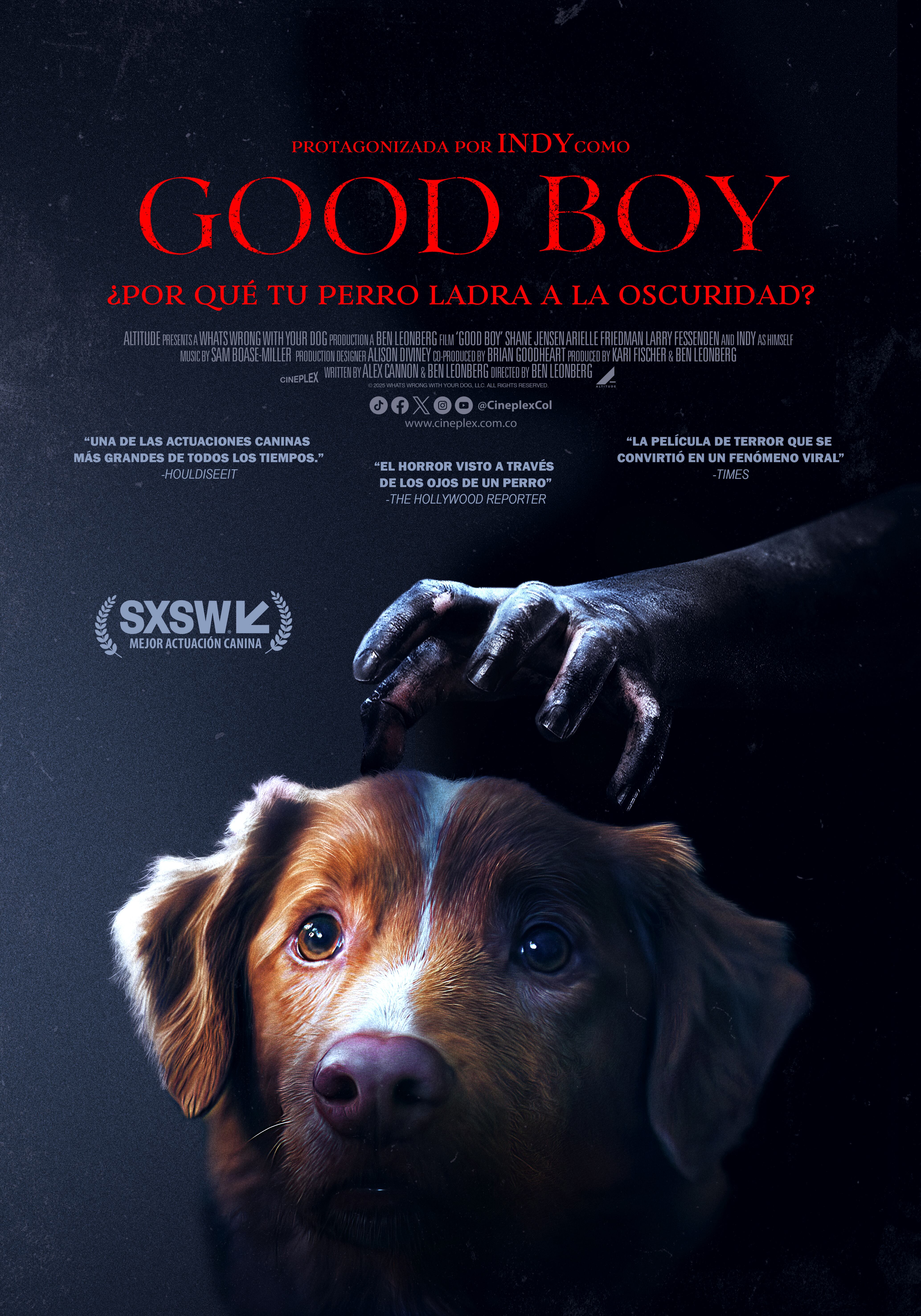 Protagonizada por el perrito Indy, junto con Shane Jensen y Arielle Friedman, la película debutó en el Festival de Cine SXSW donde recibió el premio especial Howl of Fame de SXSW 2025 a la Mejor Actuación Canina. “Good Boy” se estrena el 23 de octubre en salas de cine distribuida por Cineplex. Pero ojo, no hay mascotas parlantes, solo sustos aterradores.