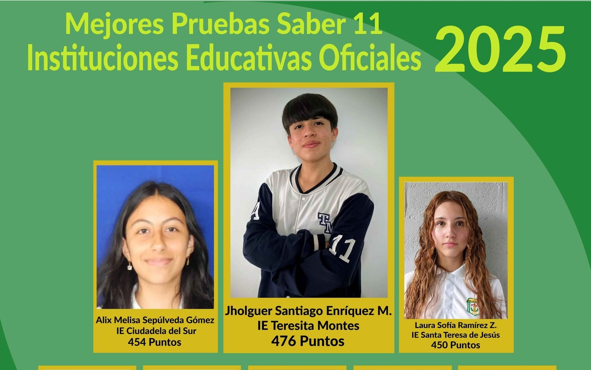 Este es sin duda pues el resultado de un trabajo que se ha hecho con no solamente con este estudiante, sino con todos los estudiantes de nuestro establecimiento. La institución educativa Teresita Montes viene avanzando en el desarrollo de estos resultados, en el mejoramiento permanente de resultados.