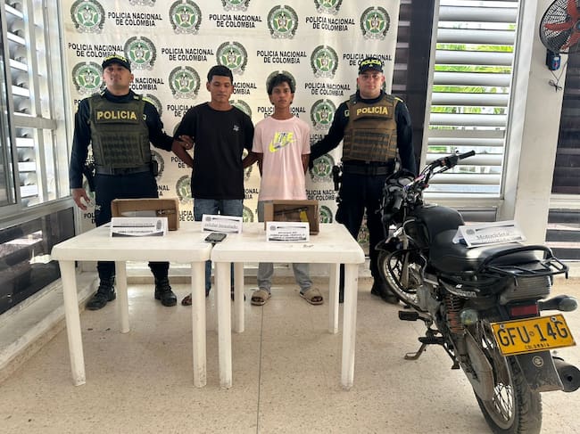 En el barrio Montecarlo, de Magangué, la Policía capturó a estos dos hombres luego de intimidar a dos mujeres con arma de fuego y hurtarle sus pertenencias.