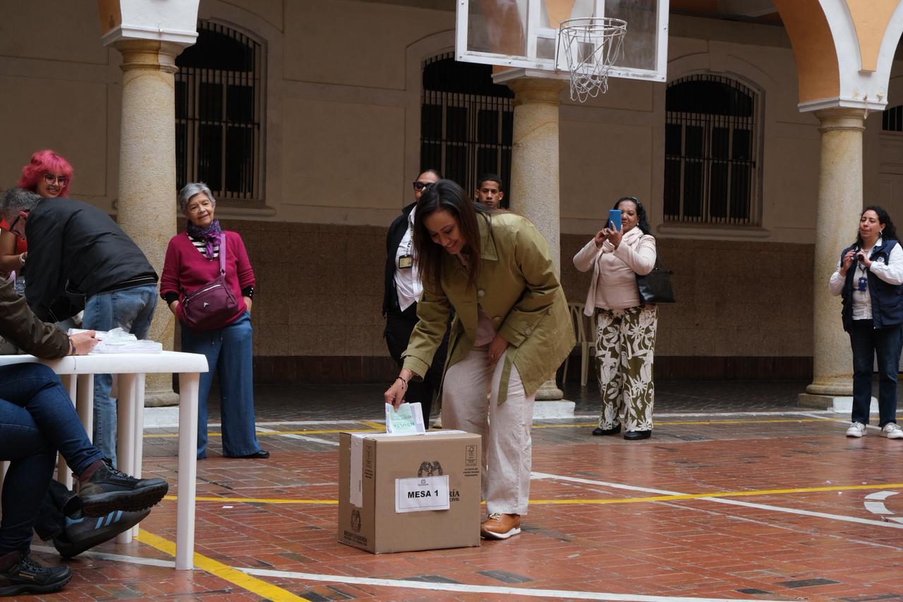 Hacia las 12 del mediodía la exministra y precandidata presidencial, Carolina Corcho, ejerció su derecho al voto en el Colegio Mayor San Bartolomé en el centro de Bogotá.