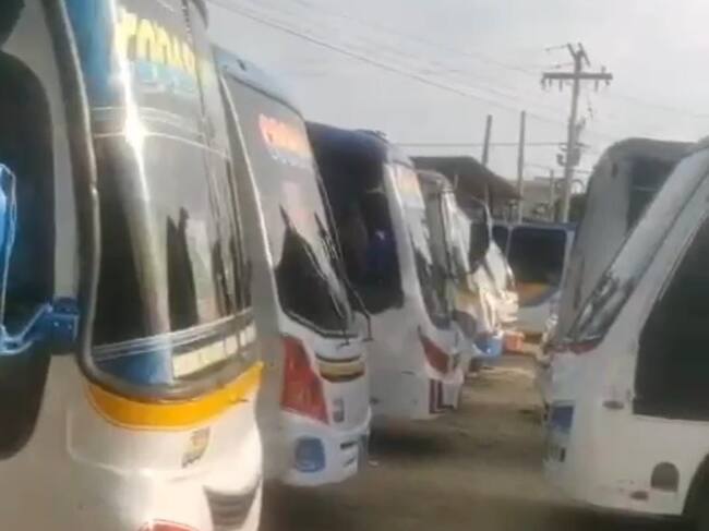 Buses de la empresa parqueados. Foto tomada de video de redes sociales