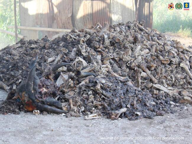 De acuerdo con la investigación, los capturados estarían realizando la quema a campo abierto de material biológico proveniente de reses y cerdos, el cual era manipulado sin medidas sanitarias. Posteriormente, los restos eran triturados en calderas e incinerados en hornos cremadores para obtener un polvo que servía como materia prima para la elaboración de productos comerciales tales como alimentos para perros, cosméticos y otros artículos, que serían distribuidos en la ciudad de Bogotá.