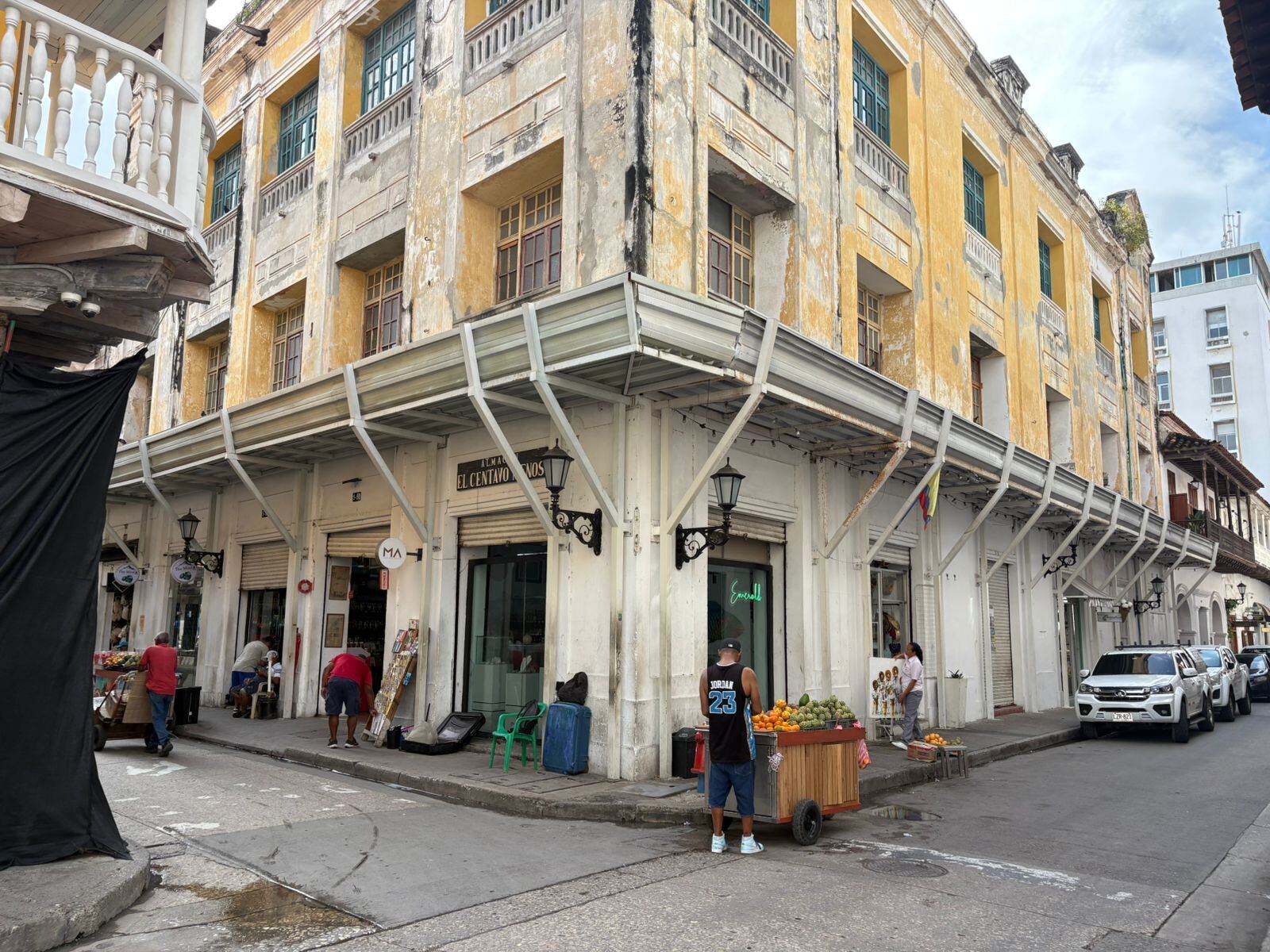 El edificio conocido como El Centavo Menos, ubicado en el Centro Histórico de Cartagena, en la esquina de la Calle Cochera del Gobernador con Manuela Román y Picón diagonal al Palacio de la Proclamación, se encuentra en riesgo inminente por su evidente deterioro.