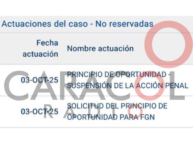 La solicitud quedó radicada el 3 de octubre de 2025 en uno de los procesos que se adelanta ante el Juzgado 27 Penal del Circuito con Función de Conocimiento de Medellín, y con ello se suspendió la acción penal en su contra, mientras la Fiscalía determina la viabilidad de la solicitud y posteriormente se presenta ante un juez para el respectivo control de legalidad del acuerdo propuesto.