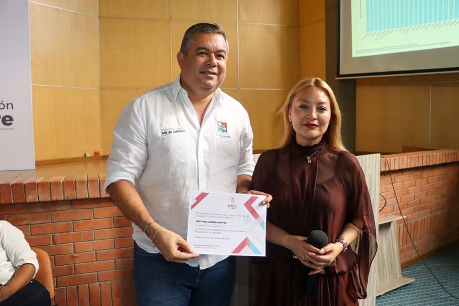 El secretario general de la Gobernación, Andrés Vivero León, y el secretario de Educación, Luis Manuel Ortega, recibieron el reconocimiento en nombre de la gobernadora Lucy García Montes, quien impulsa una política educativa enfocada en calidad y cobertura.
