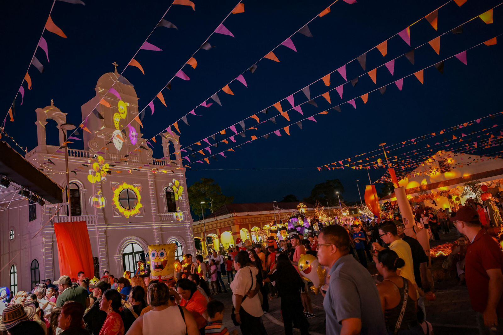 Una de las atracciones principales fue el espectacular show de video mapping proyectado cada noche sobre la catedral del Pueblito. Esta experiencia visual única combinó luces, color y sonido para contar historias mágicas, haciendo que la arquitectura del lugar cobrara vida ante los ojos de grandes y pequeños.