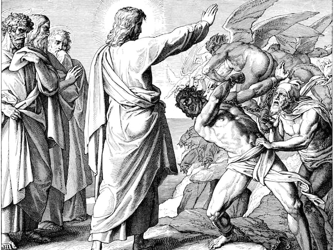 El relato bíblico describe cómo Jesús, tras cruzar el Mar de Galilea en una barca, desembarcó en la región de Gadara y se encontró con un hombre endemoniado que vivía entre tumbas. Los demonios que poseían al hombre, que se identificaron como “Legión“, le rogaron a Jesús que los enviara a una manada de cerdos que pastaba cerca. Jesús se lo permitió, y los animales, poseídos a su vez, se lanzaron por un despeñadero al mar y se ahogaron.