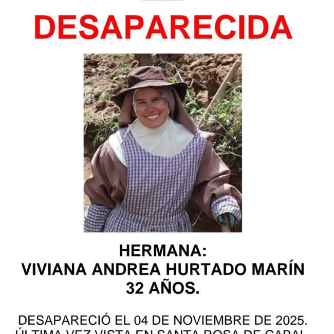 Más de 36 horas lleva desaparecida la religiosa Sor Cecilia del Espíritu Santo, perteneciente a la comunidad del Monasterio de San José en Santa Rosa de Cabal, quien salió de estas instalaciones el martes en horas de la tarde y no volvió.
