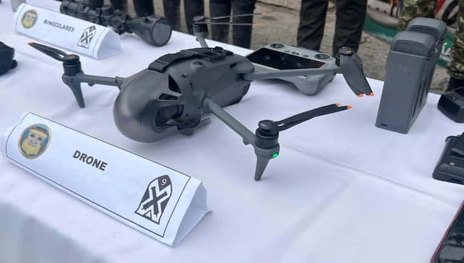 Incautados fusiles, pistolas granadas y un dron. Foto policía Neiva.