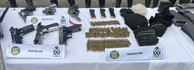 Durante el operativo, las autoridades incautaron un importante arsenal compuesto por cuatro fusiles, tres pistolas, tres revólveres, una granada de fragmentación, un artefacto explosivo improvisado, una granada de aturdimiento, un dron y abundante munición. También fueron hallados radios de comunicación, chalecos y otros elementos utilizados para la ejecución de acciones criminales.