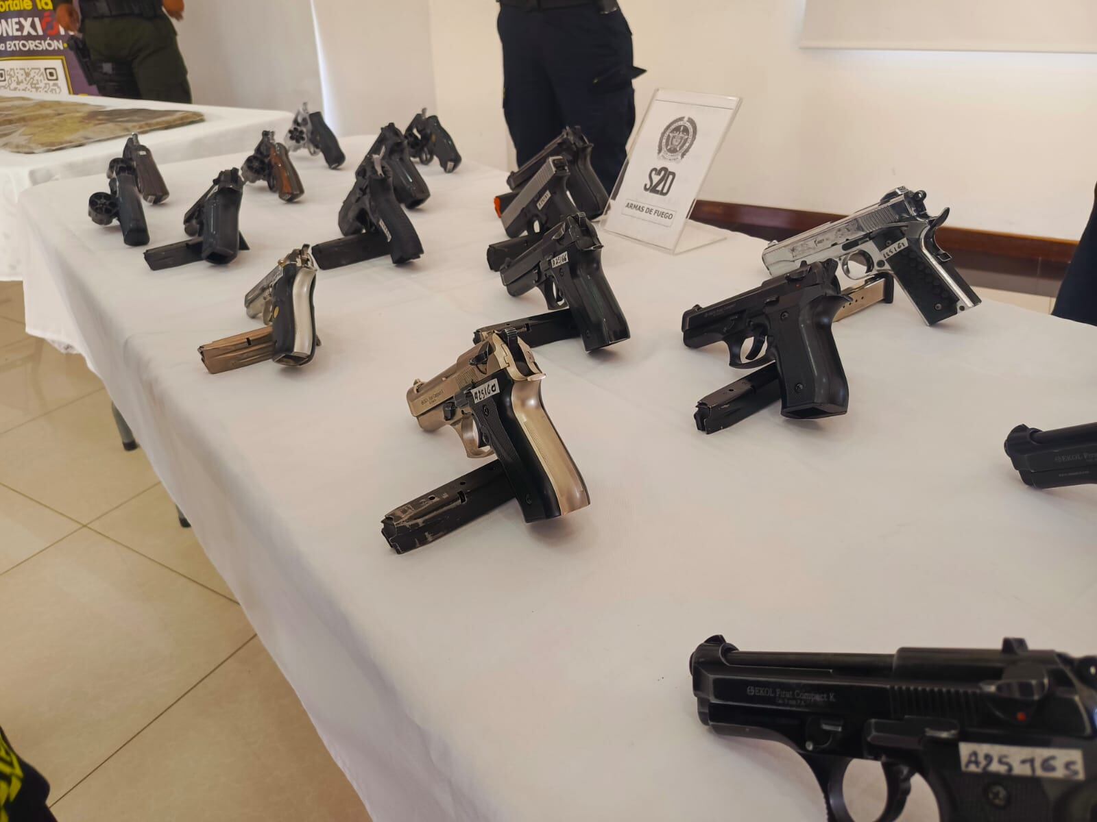 En estupefacientes, se reportó la incautación de 72.190 gramos de marihuana, 1.341 gramos de cocaína y 812 gramos de bazuco, junto con 18 armas, 10 de ellas traumáticas. También fueron desarticuladas dos estructuras de microtráfico y extorsión: «Los Vecinos» (11 capturas) y «Los Gomelos» (6 capturas), lo que, según la institución, generó una reducción estimada del 85% en extorsiones asociadas a estas bandas.