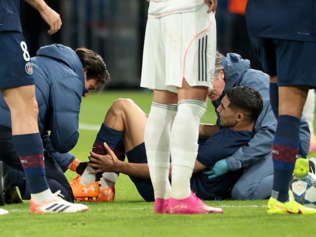 Achraf Hakimi tras la lesión que le ocasionó Luis Díaz. (Photo by Jean Catuffe/Getty Images) / Jean Catuffe