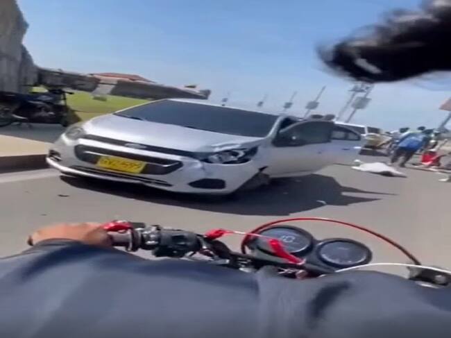 Motocicleta y vehículo particular chocaron en contraflujo de la Av. Santander: hay dos heridos