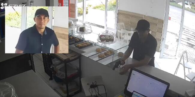El hombre ingresa a la panadería y de inmediato amenaza con un arma a la persona que se encuentra atendiendo en el lugar, luego le solicita que le entregue todo lo que tenga en la caja.