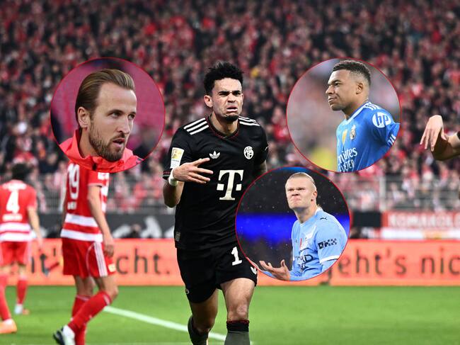 Luis Fernando Díaz Marulanda de Selección Colombia y Bayern Múnich y Kylian Mbappé, Harry Kane y Erling Haaland / Getty Images.