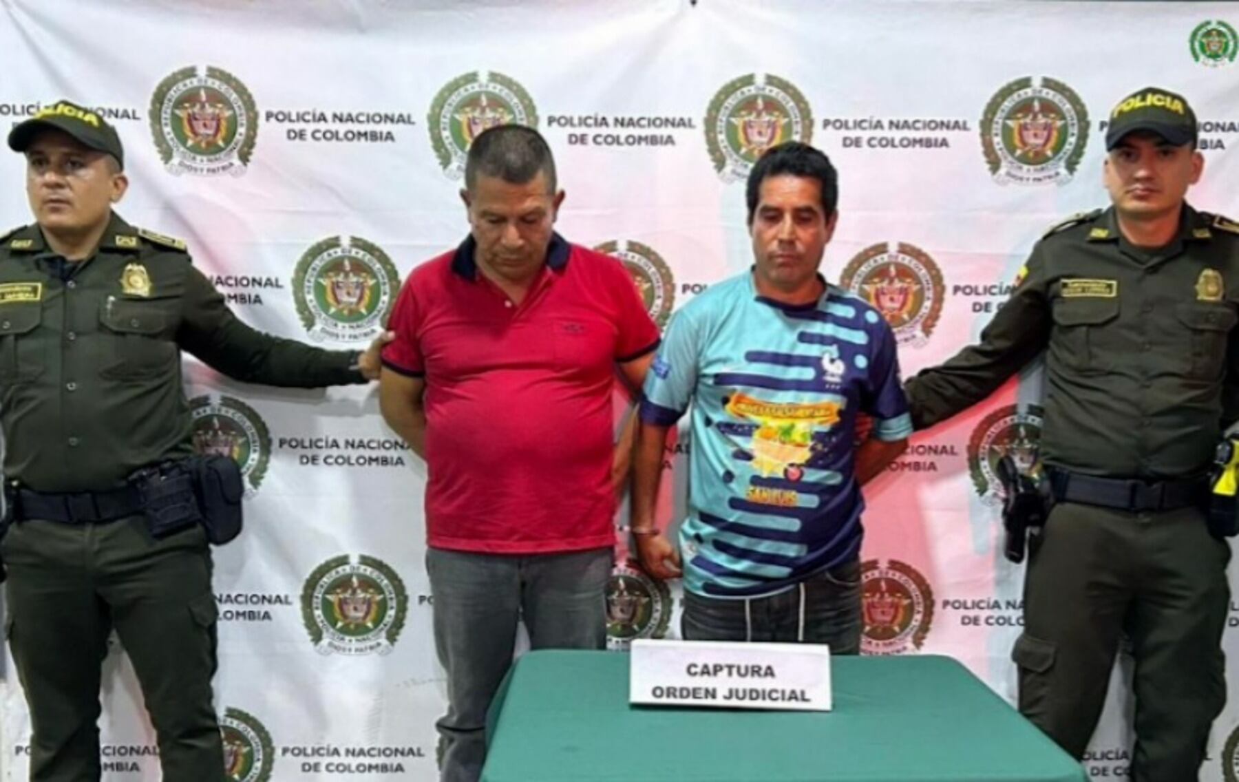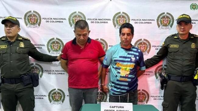La Policía Nacional hizo efectivas las órdenes de captura contra estos hombres en el barrio Centro del municipio de San Luis (Tolima).