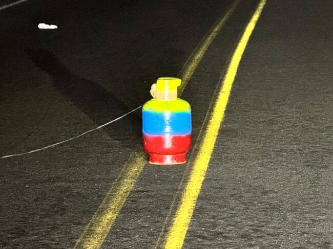 Tres cilindros pintados con los colores de la bandera de Colombia aparecieron este jueves en la vía que comunica a Cali con el puerto de Buenaventura, en el Valle del Cauca. Dos de ellos fueron encontrados en el kilómetro 22 y otro en el kilómetro 54, a la altura del sector de Atuncelas, jurisdicción del municipio de Dagua.