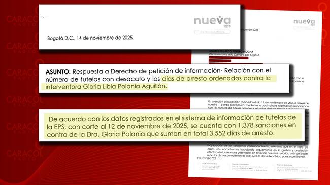 Gloria Polanía, quien hasta el viernes pasado fue la interventora de la Nueva EPS, se fue del cargo con un registro de 1.378 sanciones y 3.552 días de arresto por desacato a tutelas.