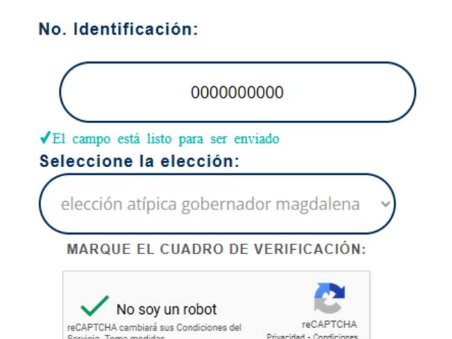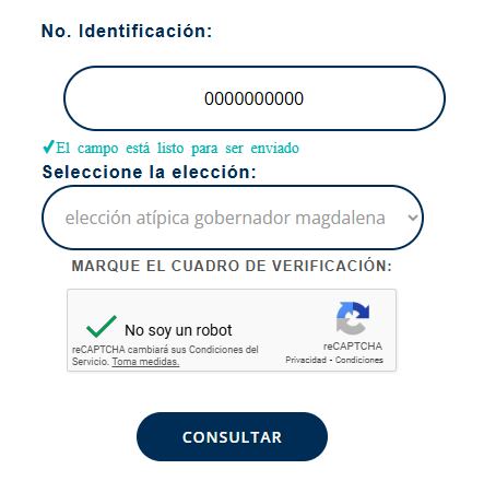 luego, digite su numero de documento sin puntos ni comas y seleccionando la tercera opción “elección atípica gobernador magdalena” como se ve en la siguiente imagen: