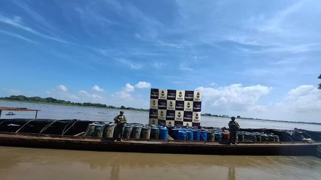 En desarrollo de operaciones de registro y control adelantadas por la Armada de Colombia, de manera conjunta con el Ejército Nacional, en los departamentos de Antioquia, Cesar y Bolívar, se logró la inmovilización de insumos líquidos y sólidos que estarían siendo utilizados para el procesamiento de sustancias ilícitas y que tendrían un valor superior a los cuatro mil millones de pesos.
