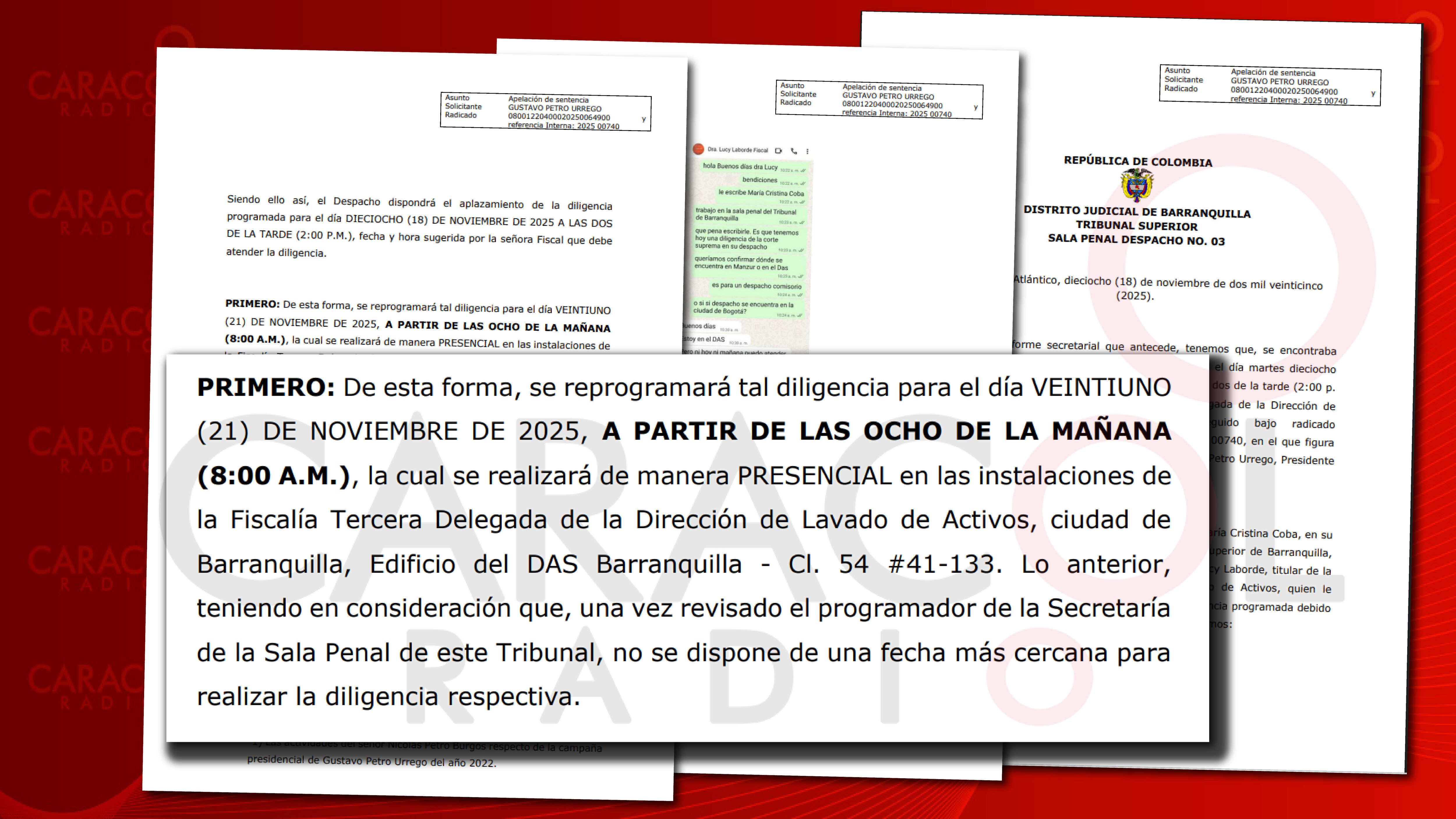 Entonces, la Sala Penal del Tribunal Superior de Barranquilla reprogramó la inspección ordenada por la Comisión de Investigación y Acusación de la Cámara de Representantes para mañana a las 8:00 am.