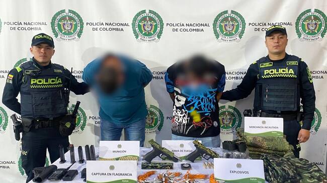 “Se logra la captura de dos personas por los delitos de porte, tráfico y fabricación de armas de fuego, municiones y explosivos. Es de resaltar que al solicitar los documentos o acreditación de estos mismos, manifestaron no tenerlos”, aseguró el teniente coronel, Sergio Bayona.