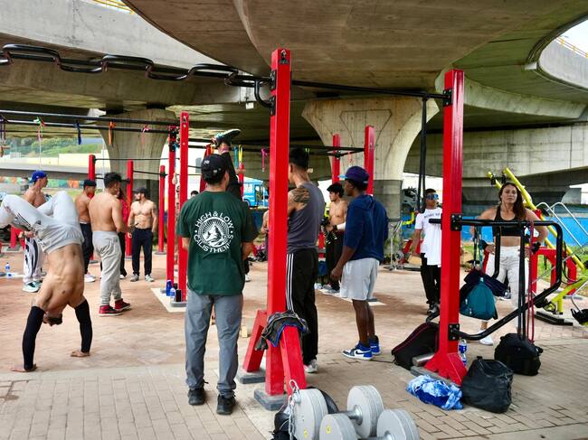 Este gimnasio fue instalado debajo de los puentes de la Avenida Boyacá con calle 127 y lo mejor es que todo es accesible, gratis y sin necesidad de membresía.