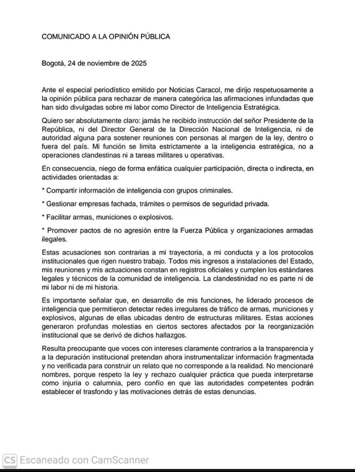 Lea aquí la carta a la opinión pública: