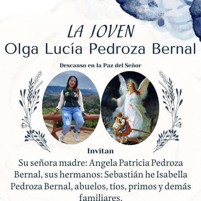 Este jueves 27 de noviembre a las 2 de la tarde en la Iglesia Parroquial de Toca se realizarán las exequias de la joven Olga Lucía Pedroza Bernal asesinada en el municipio de Soracá el pasado 24 de noviembre.