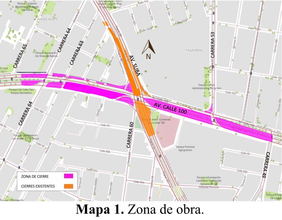 Los cierres conciernan un carril de cada sentido de la Calle 100 entre carrera 49 y 65, que de acuerdo con el contratista encargado de la obra, comenzarán a partir de este viernes 28 de diciembre y se prolongará durante los próximos 6 meses.