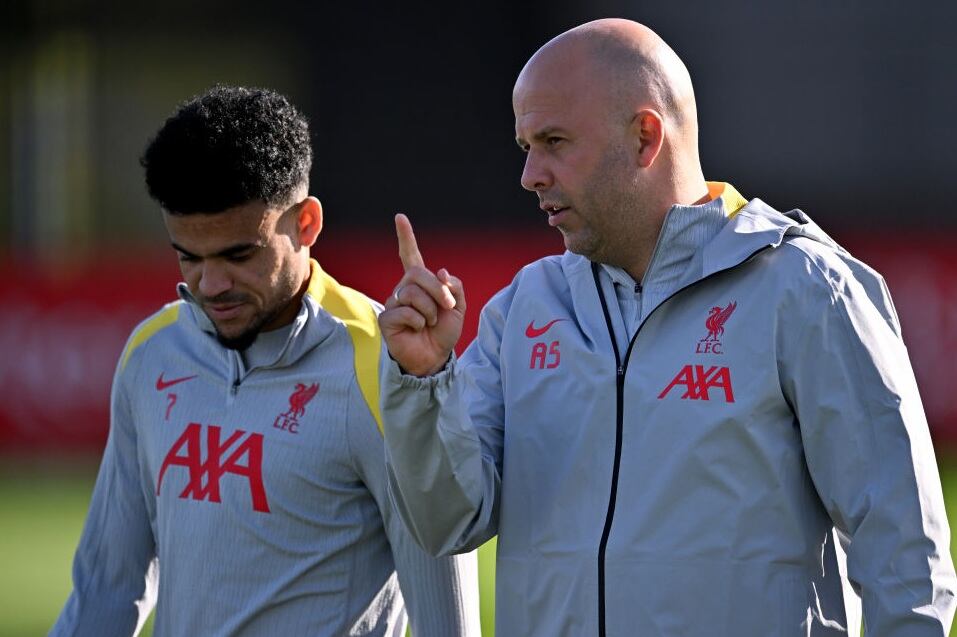 Luis Díaz y Arne Slot, técnico del Liverpool / Getty Images / Andrew Powell
