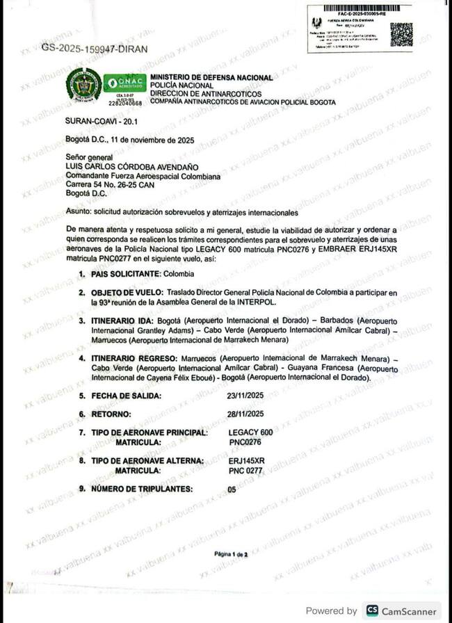 Afirmó, además, que en el viaje hay “11 oficiales, un componente de las diferentes áreas de Policía. Estamos hablando de Policía Judicial, Asuntos Internacionales, el jefe de Interpol, Narcóticos y otros uniformados que nos están representando en diferentes áreas acá”.