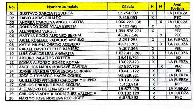 La lista quedó encabezada por Gustavo García Figueroa, exviceministro del Interior del gobierno Petro, y le sigue Fabio Arias, presidente de la Confederación Unitaria de Trabajadores, y Andrea Carolina Ángel Espitia.