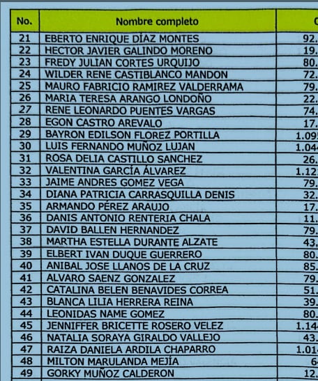Otros de los nombres que se destacan en la lista son el exsuperintendiente de Salud Luis Carlos Leal, Leonidas Name, sobrino del senador Iván Name y Domingo José Ayala Espitia, el presidente de Fecode.