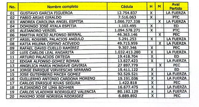 La lista quedó encabezada por Gustavo García Figueroa, exviceministro del Interior del gobierno Petro, y le sigue Fabio Arias, presidente de la Confederación Unitaria de Trabajadores, y Andrea Carolina Ángel Espitia.