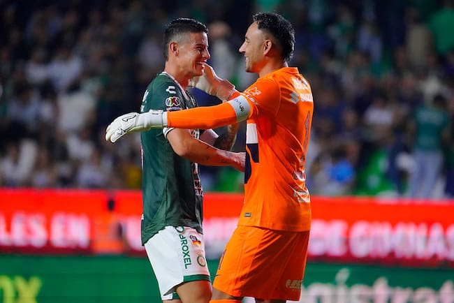 James Rodríguez y Keylor Navas en un partido entre León y Pumas / Getty Images / Jam Media