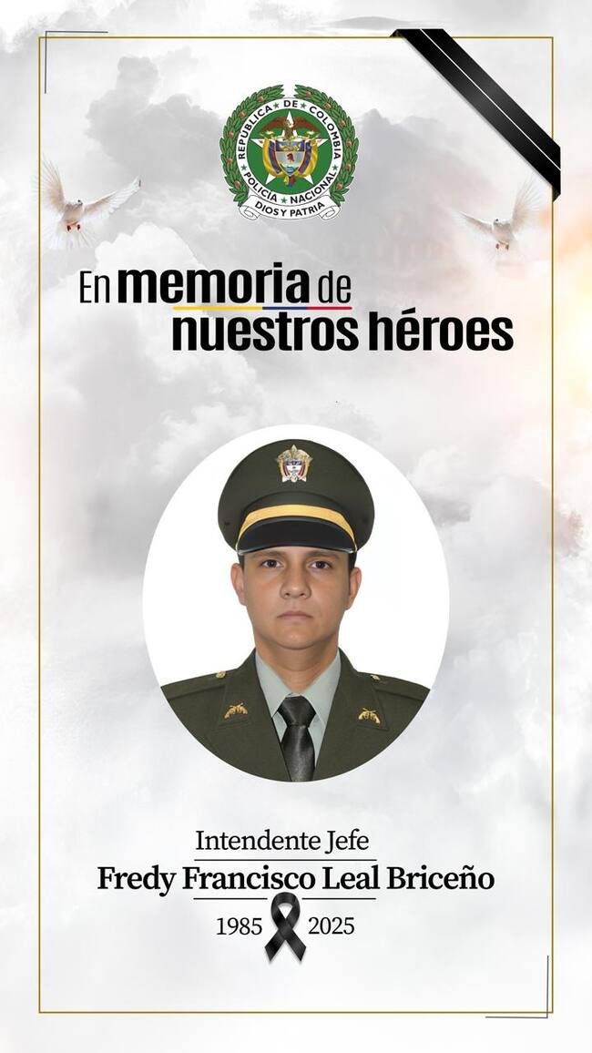 “El Intendente jefe Fredy Leal será recordado por su profesionalismo, su valentía y su entrega absoluta al cumplimiento del deber”, afirmaron sus compañeros de unidad.