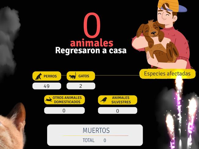 Conexión Animal reportó 51 animales afectados por la pólvora sonora, en comparación al año 2024 fueron 11 casos menos, pero infortunadamente uno de ellos fue encontrado atropellado.