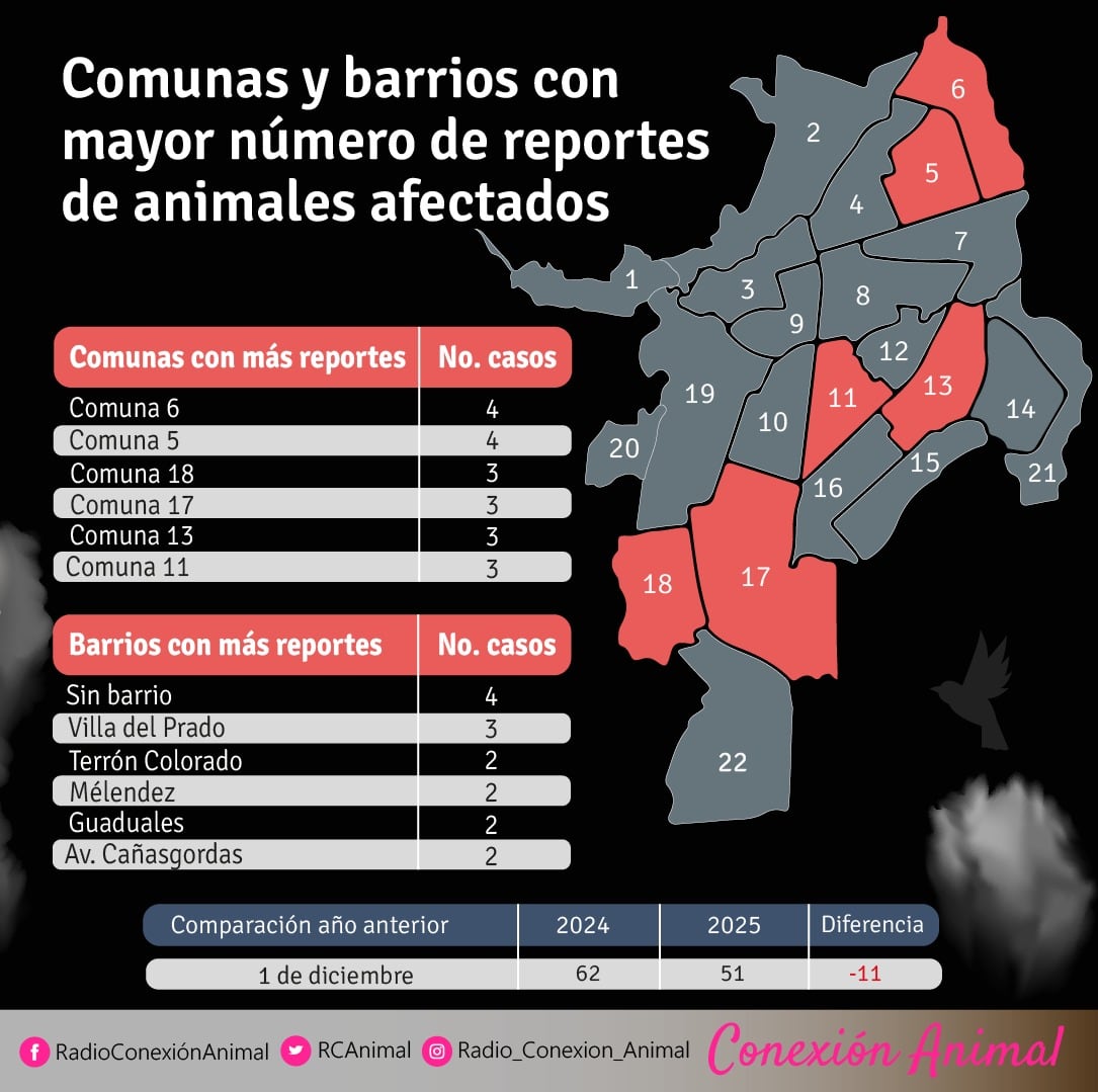 Conexión Animal reportó 51 animales afectados por la pólvora sonora, en comparación al año 2024 fueron 11 casos menos, pero infortunadamente uno de ellos fue encontrado atropellado.